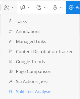 Split Test Analysis allows for the comparison of a control and test set of pages based on either Page Tag groups, specific pages or Content Type patterns. The comparison results provide a correlation analysis on the impact of the test including a confidence level.