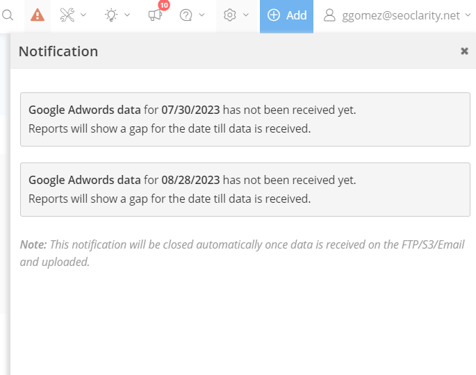 Tracking, reporting, and analyzing your SEO efforts would be impossible without analytics being constantly pulled into the platform but sometimes that happens. Our team and some of our clients have noticed that something breaks and the connection is lost between the time the data is sent from a source to the time it reaches the seoClarity platform. As we work on strengthening the connection between all of the analytic sources and the seoClarity platform, we now have a new Notification System. Learn More