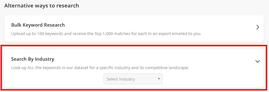 Select Industry: A searchable dropdown menu that allows you to limit your Topic Explorer research to keywords and topics related to a particular industry or industry subcategory.