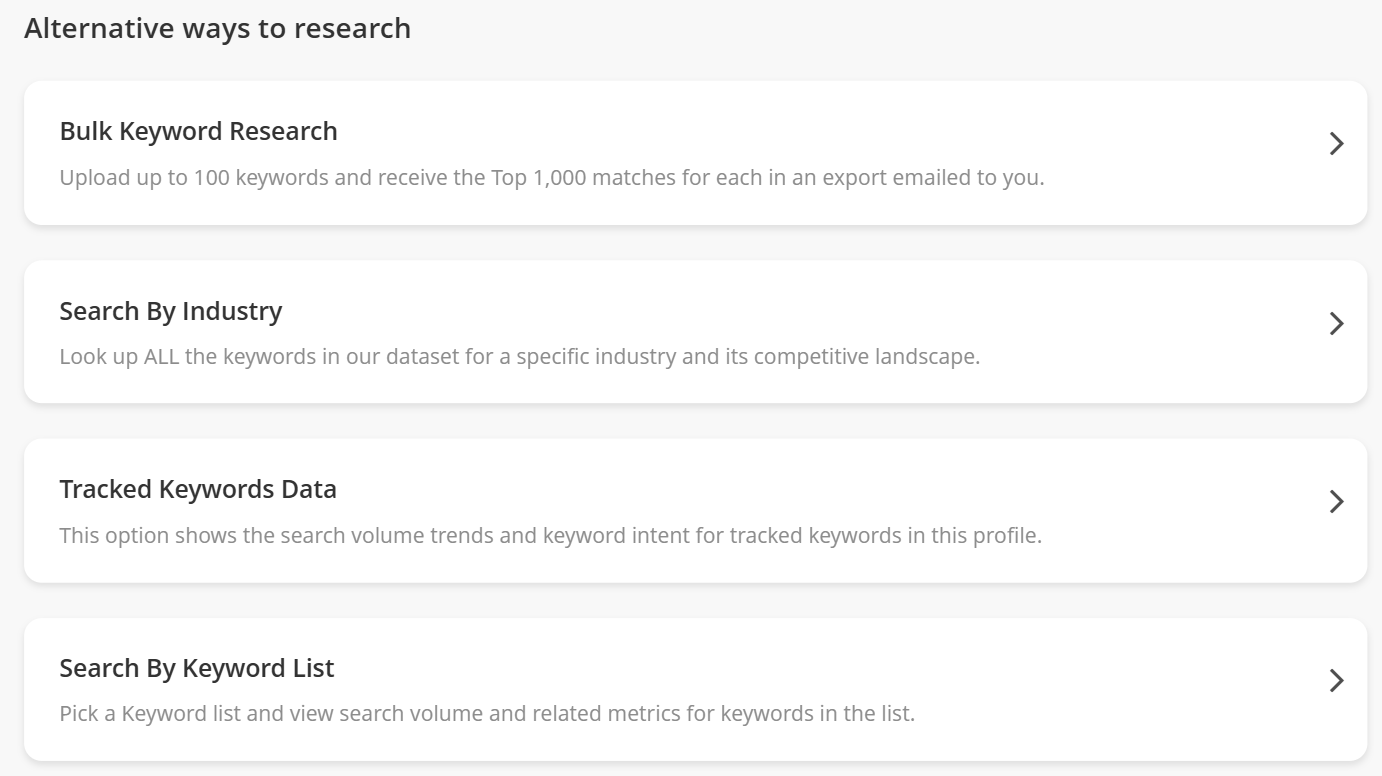 Intelligent Match: Employs our proprietary AI-driven algorithm that finds relevant keywords with audience-intent overlap with the searched keyword.