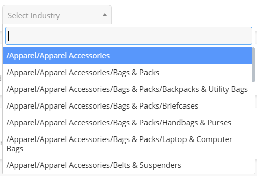 Industry: Industry categories that have relevant keywords for the entered topic. Click the arrow in front of each to expand out into subcategories