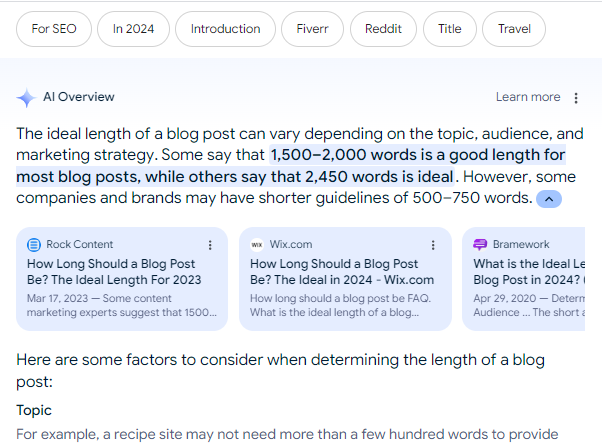 AI Overviews are a SERP Feature in Google Search that present an AI-generated summary for selected queries. They include clickable links to relevant sources for each section of the response. Here's an example of a typical AI Overview: