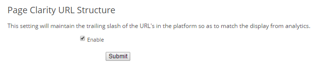 This setting will maintain the trailing slash of the URL's in Page Clarity so that analytics are properly attributed. Compare your analytics URLs within the Analytics Page Report to compare them with how they were added in Page Clarity to determine if this is needed. Oftentimes it is not needed.