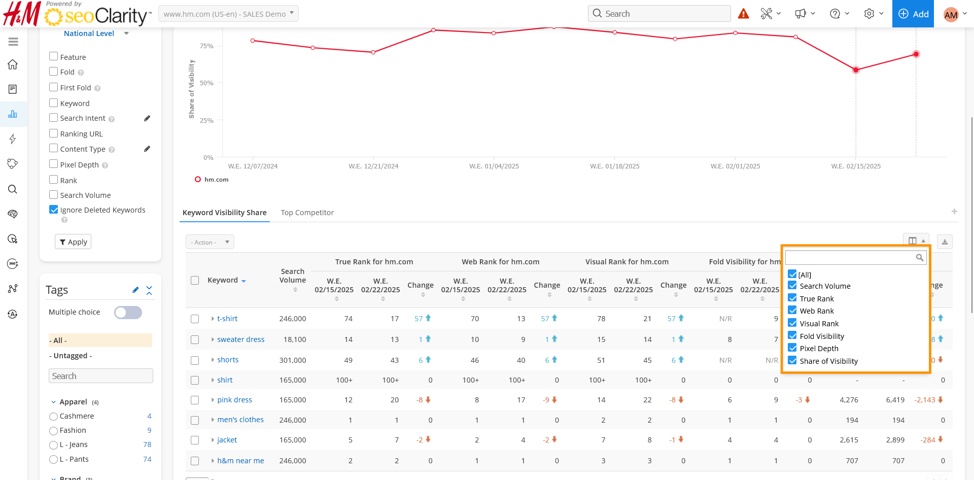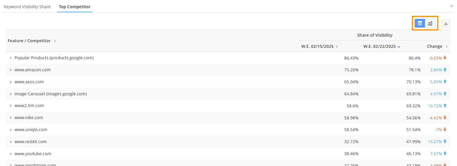 - Replace Share of Voice with Share of Visibility for more accurate and useful comparisons, especially with competitors.