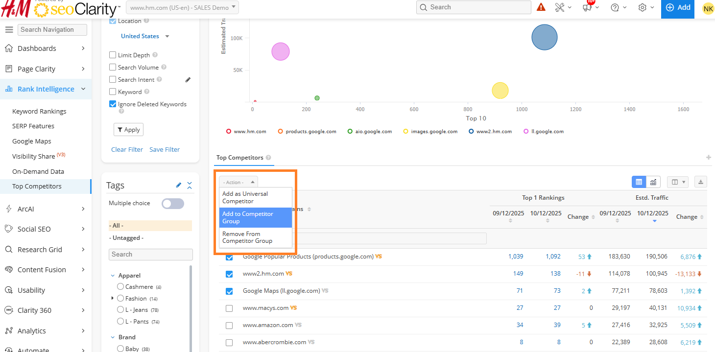 Competitor Groups can be created via the Actions dropdown on the Top Competitors page (pictured below):