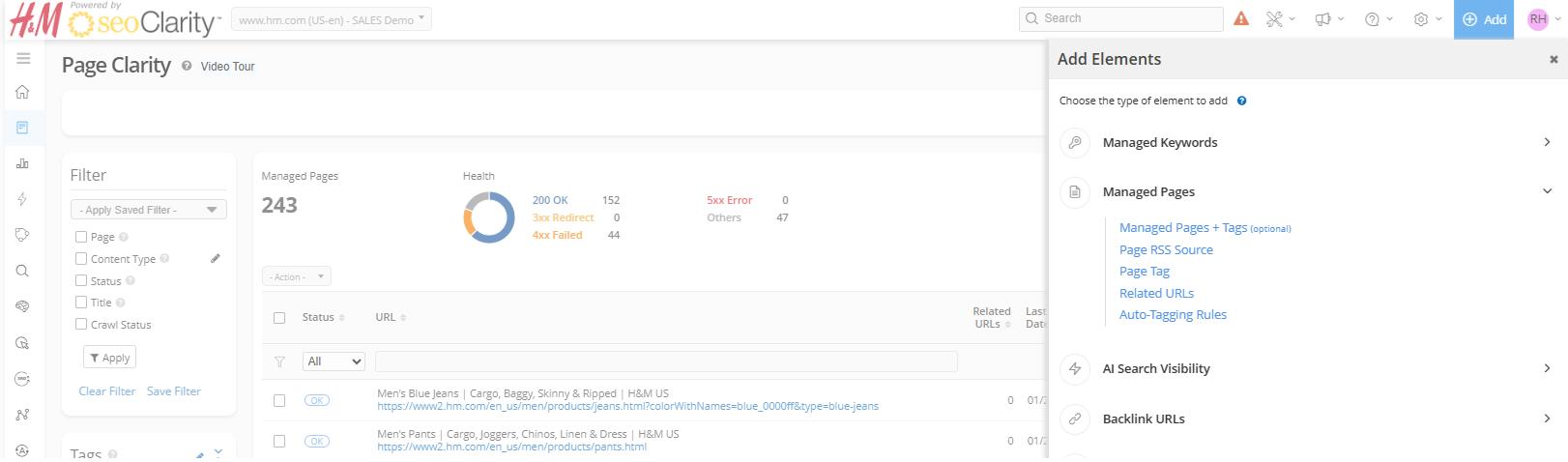 Page Clarity. Target URLs can be set as the preferred landing page for a keyword by making an association. URLs added to Page Clarity must belong to the domain profile, such as example.com/blog for the domain profile example.com. Learn