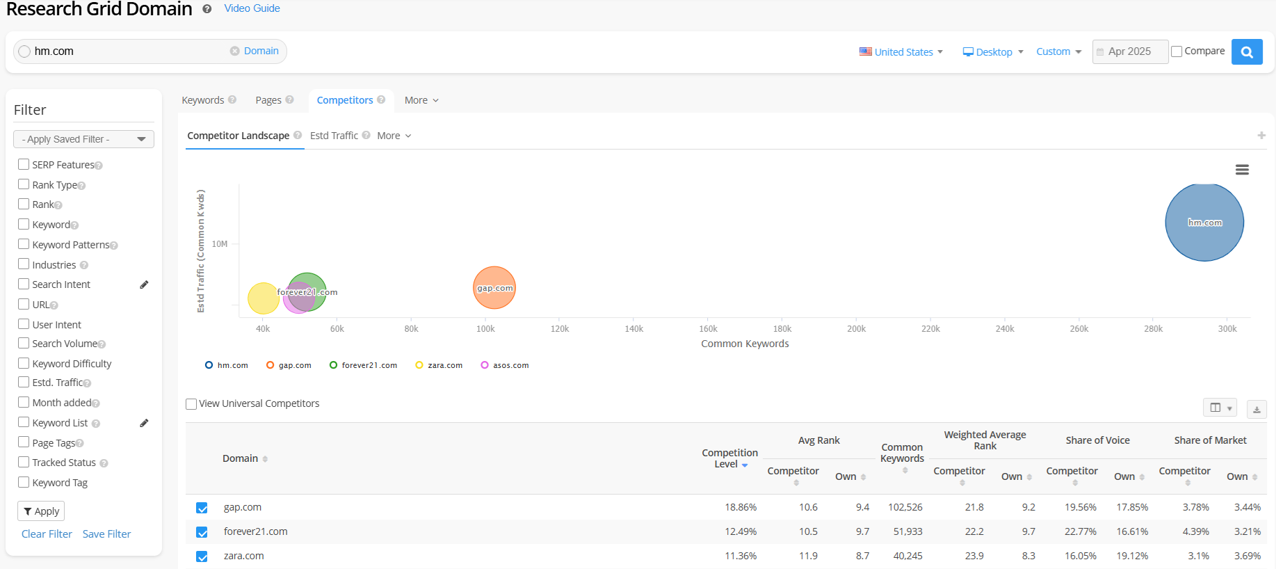 Competition Level displays a percentage relative to the unique ranking keywords compared to the common keywords found ranking for your domain and a competitors domain. This percentage is based on the number of common keywords ranking divided by the number of unique keywords ranking.