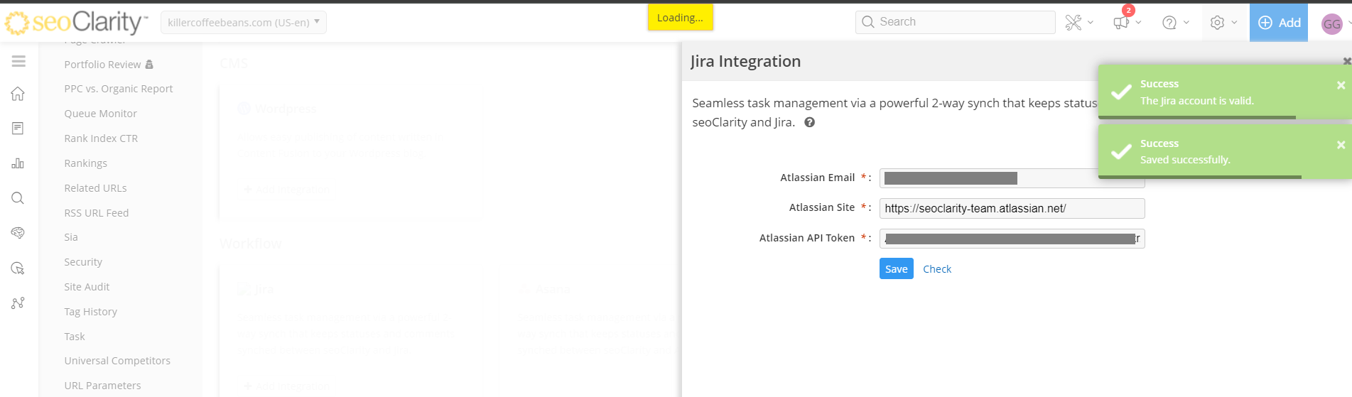 And that's it, you should be able to have Jira integrated following these steps. If you have any questions or need support please let us know at support@seoclarity.net