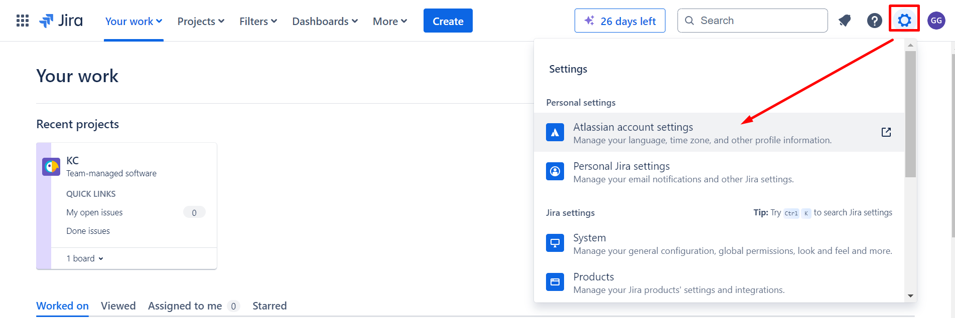 1) Login to Jira and navigate to the Atlassian Account Settings